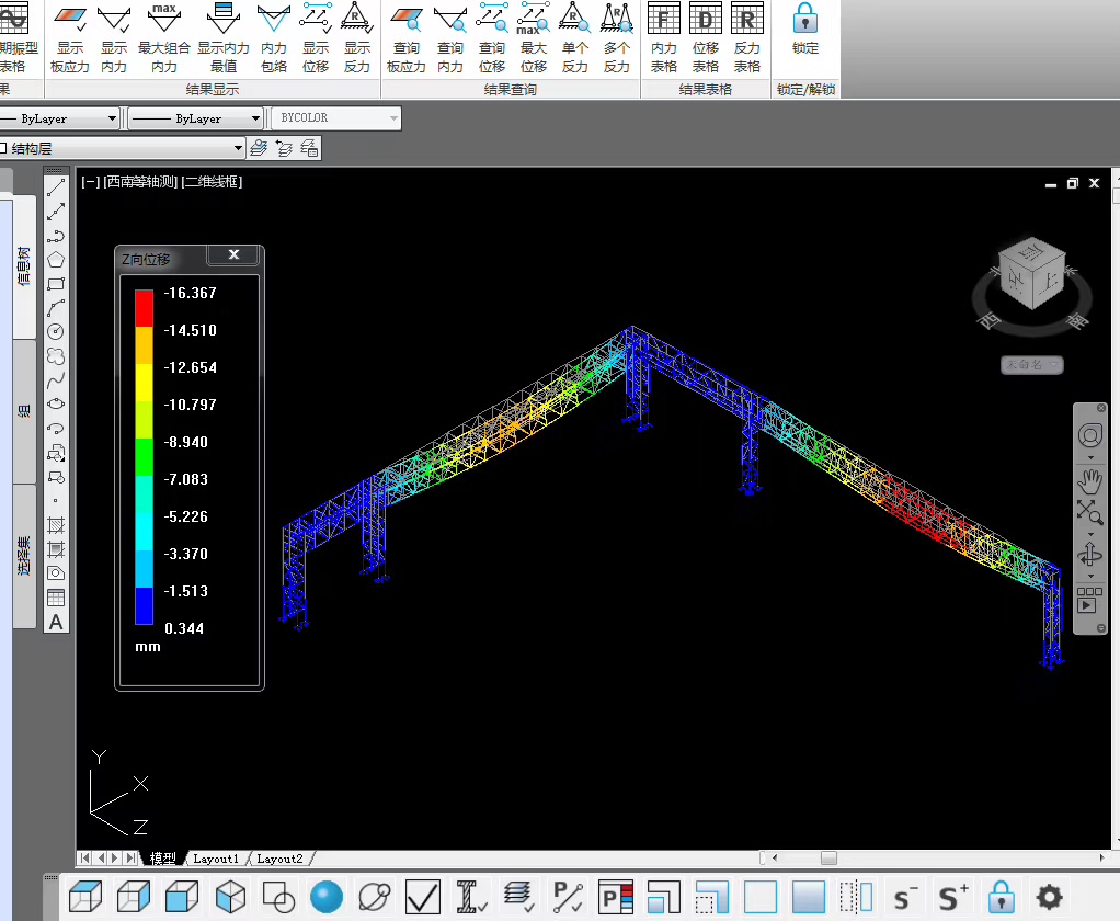 2024.12.12 福建漳州钢结构厂房结构方案,跨度50米,最大位移84毫米