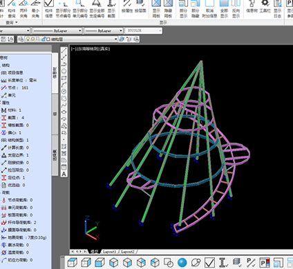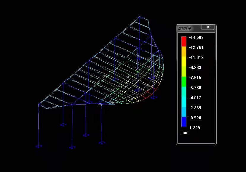2022.2.17 360度旋转楼梯,挠度控制有难度。360 degree spiral staircase, deflection control is difficult.