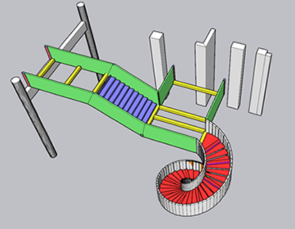 2022.2.17 360度旋转楼梯,挠度控制有难度。360 degree spiral staircase, deflection control is difficult.