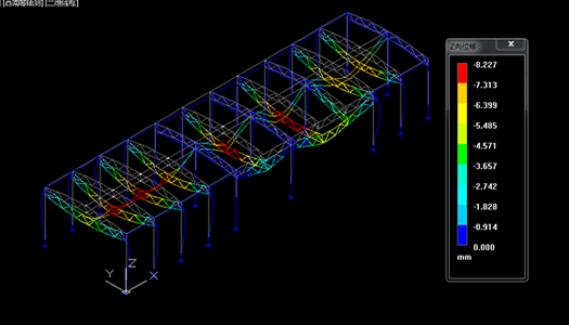 2024.12.12 福建漳州钢结构厂房结构方案,跨度50米,最大位移84毫米